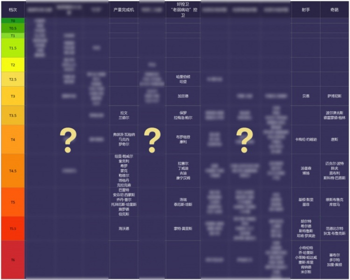 这个分组的介绍就到这里了,下面是迄今为止发布的各分组球员的分档情况: