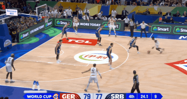 德国队的高低位掩护和球星的个人能力,让塞尔维亚在防守端接连出现了沟通失误,当小瓦格纳在NBA三分线距离里投进三分时,比分差距一度来到了12分。