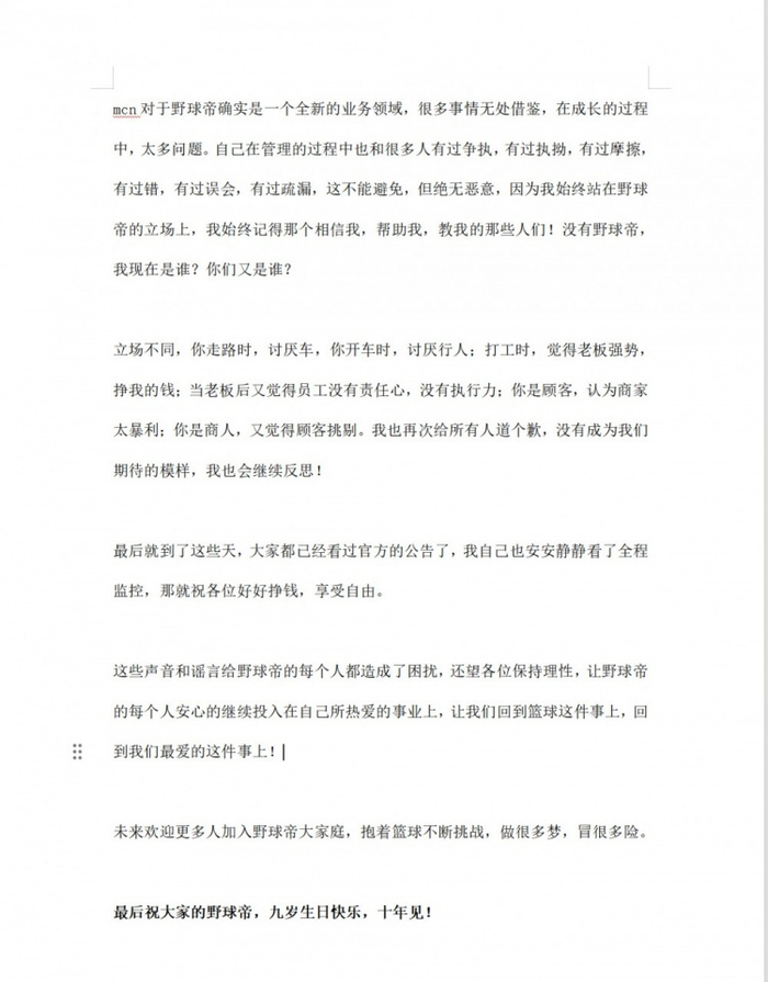 今天,野球帝官博再次发文进行回应,原文如下: