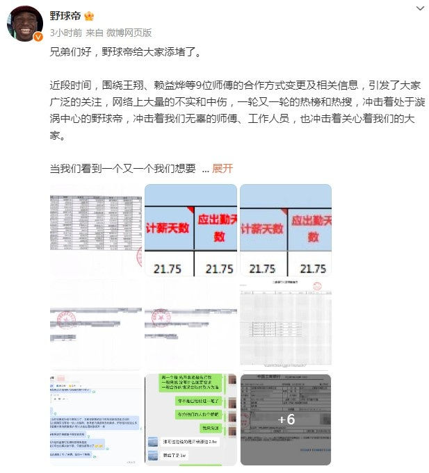 近段时间,围绕王翔、赖益烨等9位师傅的合作方式变更及相关信息,引发了大家广泛的关注,网络上大量的不实和中伤,一轮又一轮的热榜和热搜,冲击着处于漩涡中心的野球帝,冲击着我们无辜的师傅、工作人员,也冲击着关心着我们的大家。