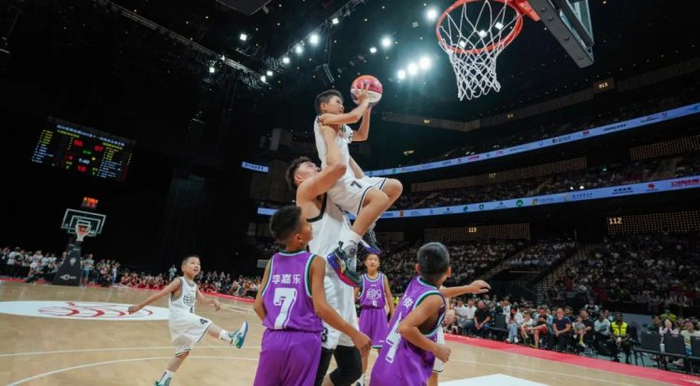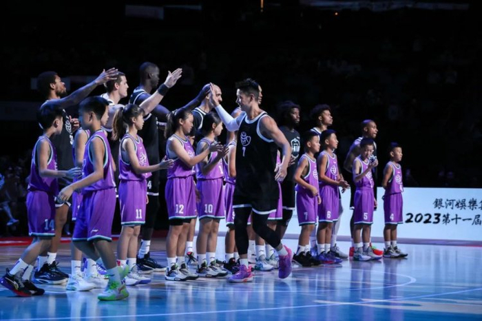 同时,这又是一场充满姚基金精神的“慈善局”。比赛进入第三节,球场上突然出现了身穿白色和紫色球衣的小球员,他们来自澳门和全国各地,从福建的罗源、平潭,到广西大山里的天等驮堪乡,从湖北一马平川的丹江口,到四川宜宾的小乡镇。这群来自“姚基金希望小学篮球季”联赛的小选手,虽然技术尚不成熟,但初次登上大舞台的他们依然绽放出勇气和团队精神,和中外明星们一道,在场上挥洒汗水,享受篮球和拼搏的乐趣。