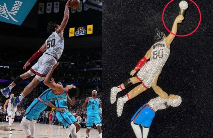 直播吧9月23日讯 据TMZ报道,掘金球星阿隆-戈登近日收到一个个人专属钻石吊坠。