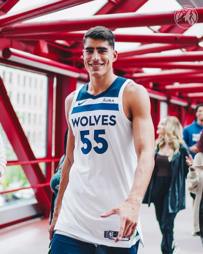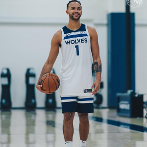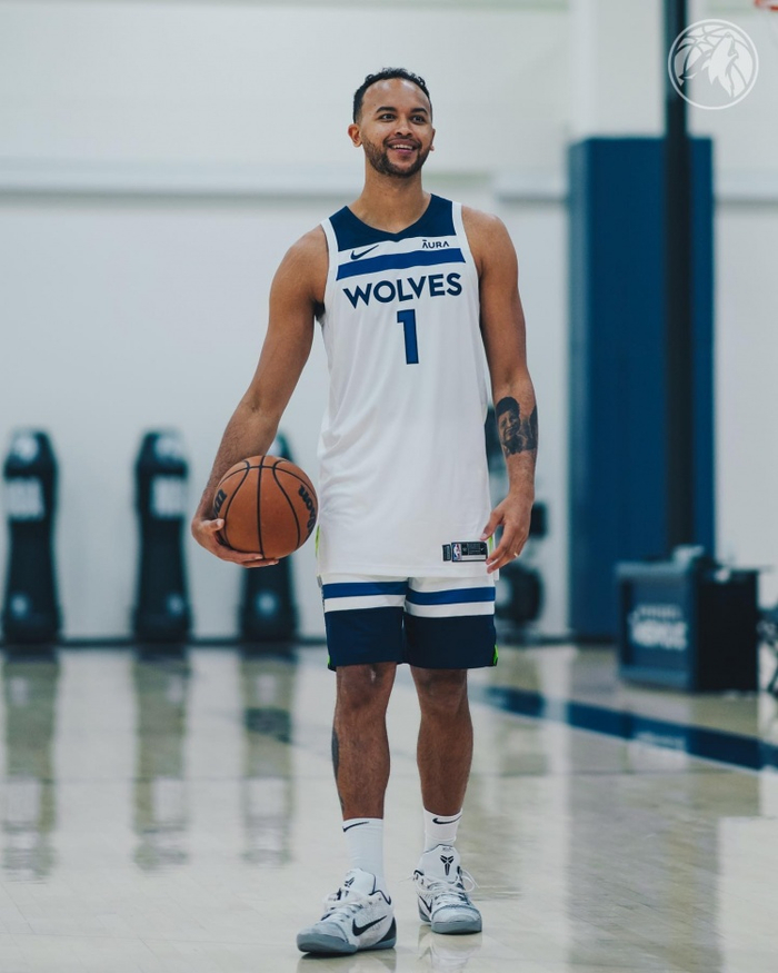 森林狼媒体日上 李凯尔身穿1号球衣亮相