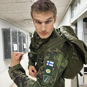 直播吧9月30日讯 爵士芬兰球员马尔卡宁今日在个人推特晒出他的军装照,并写道:“列兵马尔卡宁已服完兵役!”