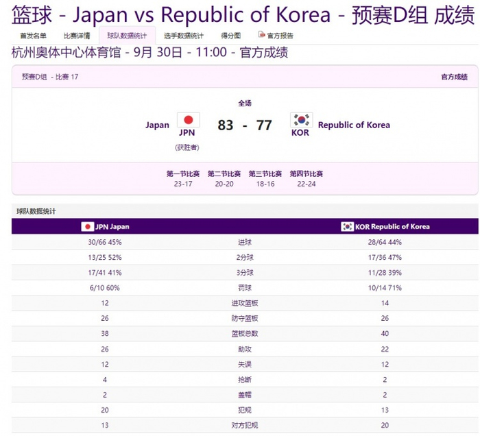 直播吧9月30日讯 杭州亚运会男篮小组赛,日本队以83-77战胜韩国队。赛后评论员殳海点评了本场比赛,原文如下: