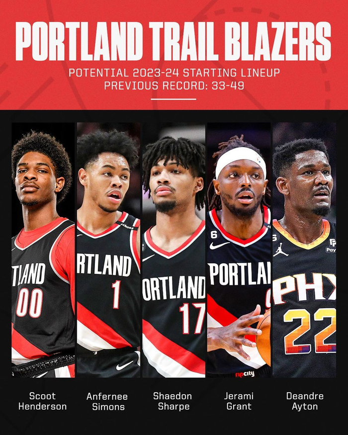 开拓者潜在首发:斯库特-亨德森+安芬尼-西蒙斯+谢顿-夏普+杰拉米-格兰特+艾顿