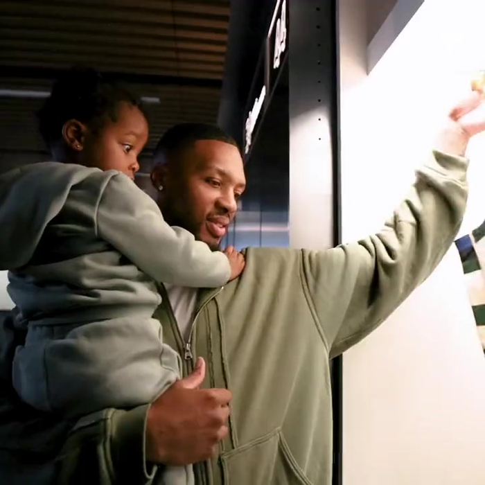利拉德来到雄鹿更衣室 查看更衣柜&举起自己0号球衣