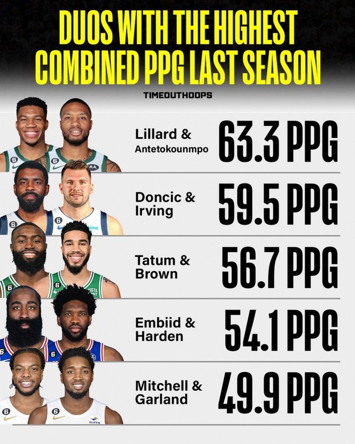 上赛季场均得分最高二人组:字母表哥63.3分居首 东欧59.5分居次