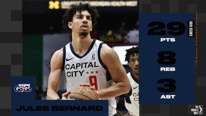 上赛季,伯纳德为奇才下属发展联盟首都Go-Go队出战32场比赛,场均27.9分钟可得到15.3分4.6板2.4助0.7断,三项命中率44.7/35.8/77.9%。