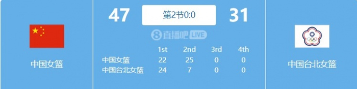 直播吧10月2日讯 杭州亚运会女篮1/4决赛,中国女篮对阵中国台北女篮,半场中国女篮47-31领先。