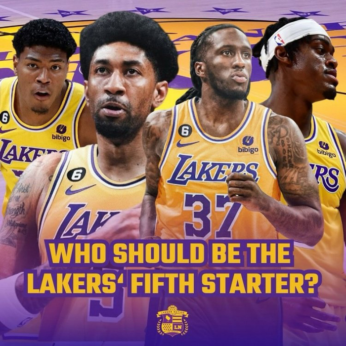 明日,湖人将在季前赛首战对阵勇士,就在这两套阵容间做选择。湖人已经确定了四个位置,即詹姆斯、戴维斯、里夫斯和拉塞尔,剩下一个位置谁属就成了问题。湖人给出四个答案:八村垒、伍德、普林斯或者范德比尔特。这里八村垒、普林斯或范德比尔特首发,就是要把戴维斯固定在五号位;伍德首发,戴维斯则出任四号位。这看似在选阵容,其实暗含是戴维斯究竟打四号位还是五号位的问题。