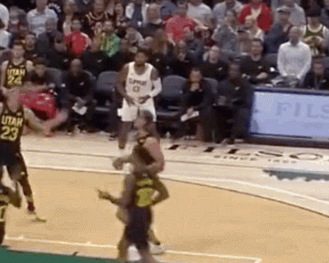这个动图说明了莱昂纳德本场参与三人快攻时的场景。爵士进攻未果,莱昂纳德、考文顿、迪亚巴特三人快攻,威少在一旁伺机而动。只见莱昂纳德持球,先是传给考文顿,考文顿接着又传回,莱昂纳德再传,这回考文顿上篮得分。这个回合是今天这场球最精彩的画面之一。快船的三人快攻既打得娴熟,又令人眼花缭乱,把爵士新援约翰-科林斯耍得团团转。