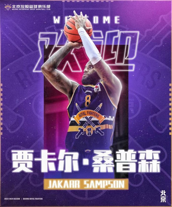 桑普森将在北控男篮身披8号战袍,他的加入让球队锋线又多了一个强有力的保障,希望桑普森能够将冠军经验带到球队当中,帮助球队获得更多胜利!欢迎你,桑普森!