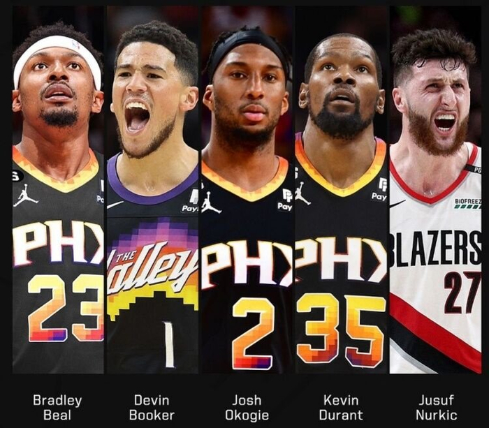 新赛季太阳队首发预测:布克、比尔、奥科吉、杜兰特、努尔基奇