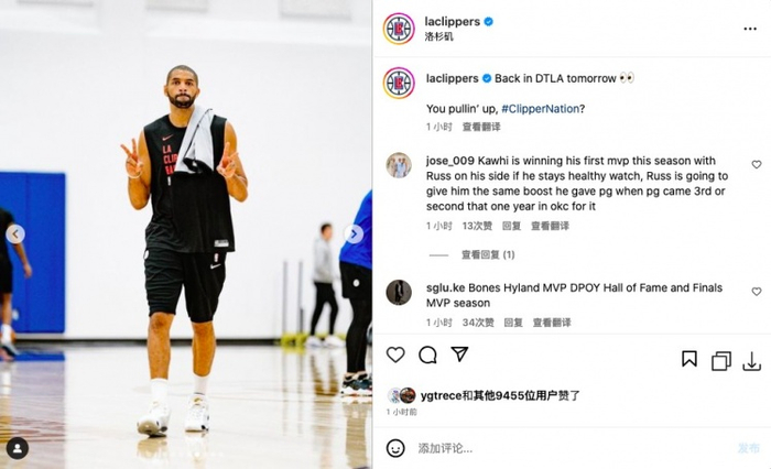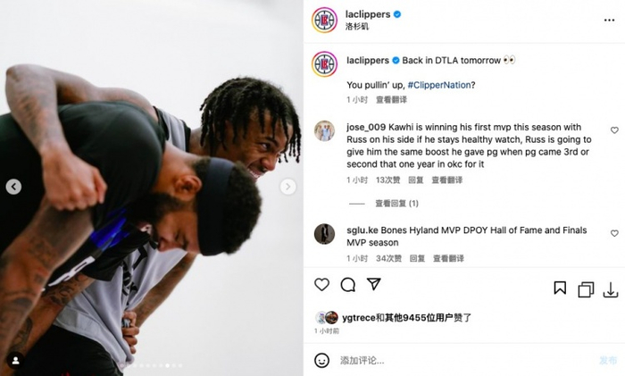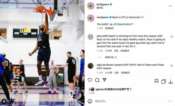 气氛融洽!快船官方晒今日训练照 威少&莱昂纳德开怀大笑😀