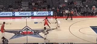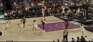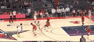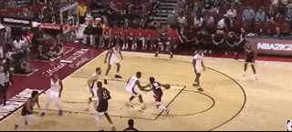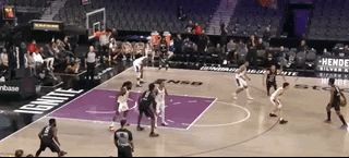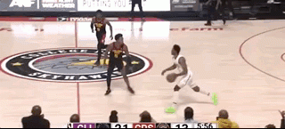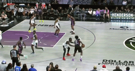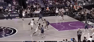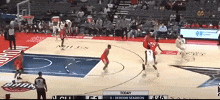 掩护还没到,亨德森就在一瞬间从静止状态冲到篮下,补防球员只能目视上反篮。