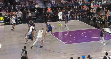 挡拆后大范围的单手长传,颇有詹姆斯和马努的风采。