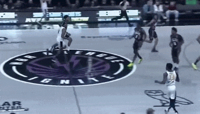 埃里克-米卡正目视队友在2v1的训练中上篮,一名点燃队球员抛出了一记弧度优美的高打板。就在进攻组准备结束这一例行公事时,一道阴影突然暴起,掠过进攻组的头顶,就像一只护食的鹰,手掌伸到3米多的空中,一巴掌拍掉篮球,随后迅速和队友形成进攻组,推进到球场另一端,在罚球线内一步单脚起跳,送上一记滑翔暴扣。