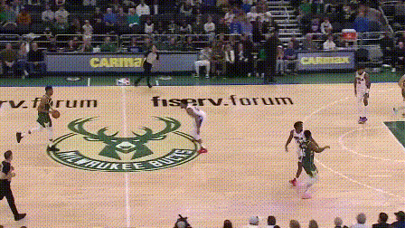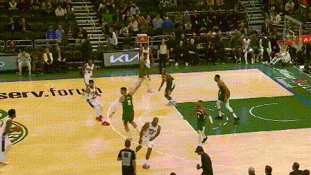 当然,如果把环境换成季后赛,雄鹿想靠字母顺下找大洛或者其他射手的空位去赢球,我大致是不看好的。雄鹿要最大化利拉德在三分线外吸引夹击的能力,应该是这两种模式: