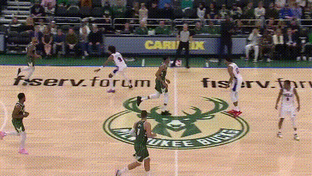 雄鹿还有字母和大洛都不在的时段,波蒂斯带三后卫,遇上突破冲筐和高低位连线,白给中的白给。由于米德尔顿时间受限,甚至出现了三巨头都不在的时段,进攻也拙计了。