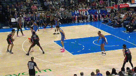 第二件事,杜伦眼里是有队友的,他能完成处理4打3,策应潜力也正在被开发。终结型中锋最头疼的事情是对手不让你终结。特别是在季后赛环境下,身边再有两个没篮的队友,你在顺下的时候遭遇的一定是千军万马——想想今年季后赛莫布利、阿伦的处境。杜伦展示了他在应对协防时寻找弱侧的视野,还能在弧顶给斯图尔特喂高低位。