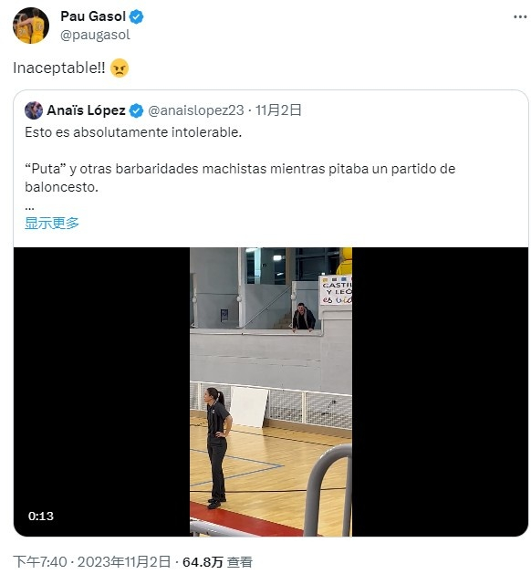 就在前几天,西班牙联赛的女裁判在场上被骂“*女”,加索尔仗义执言