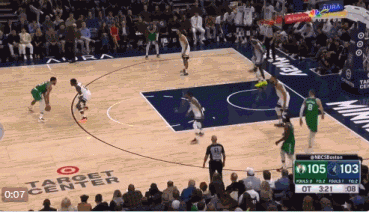 镜头七:本场比赛的头号名场面,塔图姆加时赛点名爱德华兹,但却被已经5犯在身的爱德华兹直接面断。相比之后连拿6分锁定胜局,爱德华兹对塔图姆的这次关键防守,更令人刮目相看。