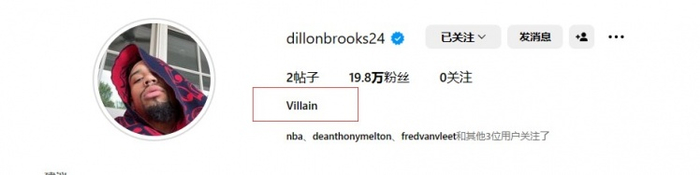 恶但不脏!狄龙-布鲁克斯将个人INS备注改为“恶棍”