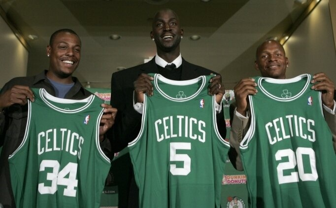 2007年凯尔特人引进阿伦和加内特,与皮尔斯组成了三巨头,三巨头在成军的第一年就夺冠,皮尔斯当选总决赛MVP。2010年,三巨头又直冲总决赛,这次3-4被科比领军的湖人大热倒灶。2012年阿伦转投热火,并在2013年的总决赛G6命中金子般的三分球,拯救热火并进而夺冠。