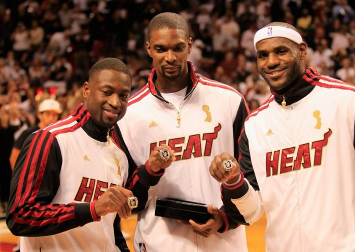 詹姆斯在2007年率骑士破天荒地打入总决赛后,便一直没有突破。于是他在2010年决定南下迈阿密,与韦德、波什等人组成三巨头。三巨头的热火连续4年闯入总决赛,2次夺冠,詹姆斯均当选总决赛MVP。2014年折戟总决赛后,詹姆斯回归骑士,与欧文、乐福组成新搭档,与韦德、波什说再见。