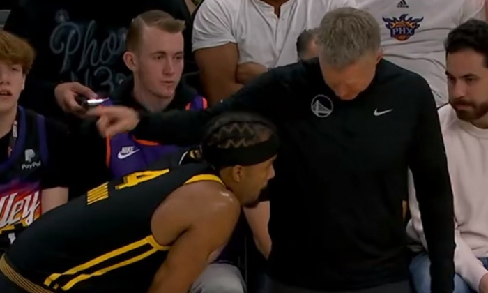 看勇士太阳二番战直播的时候,有这样一个画面: