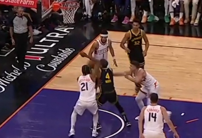 第三节末的几次选择,是穆迪怒气的侧漏,也让勇士多少追了一点分数。略微浮出水面,科尔摆出了一盯四联,而那个追防布克的球员不是别人,正是穆迪。