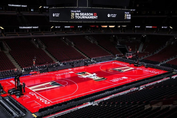 联盟当然预见到了这种情况,为此才苦思冥想许久,一直到今年4月才终于决定在球场设计上动脑筋。而这整个过程的匆忙和潦草,注定了最终成品的尴尬——之所以说尴尬而不是失败,是因为这些地板确实能满足NBA的目的:所有人一看都知道是季中赛,姑且也算一种成功了。