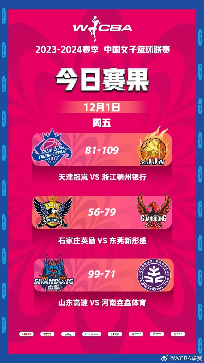 直播吧12月1日讯 2023-2024赛季WCBA常规赛第十七轮今日三场比赛战罢。