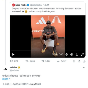随后,阿迪达斯官推回复道:“反正你很快就要退役了。”