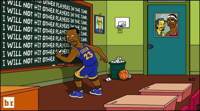 Draymond has to write “I will not assault European centers” 100 times on the blackboard