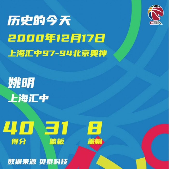 CBA历史上的今天:孙军单场70分创本土纪录 姚明成首位40+30先生