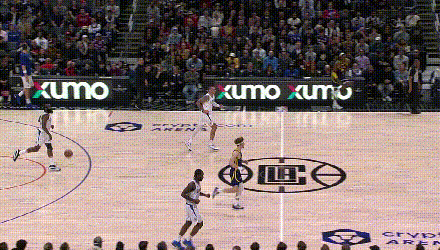 还解锁了快船之前玩不出来的东西——三分线外发牌直击腹地。