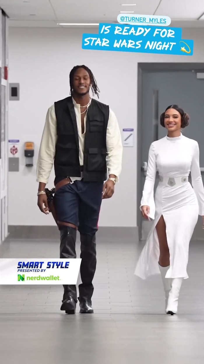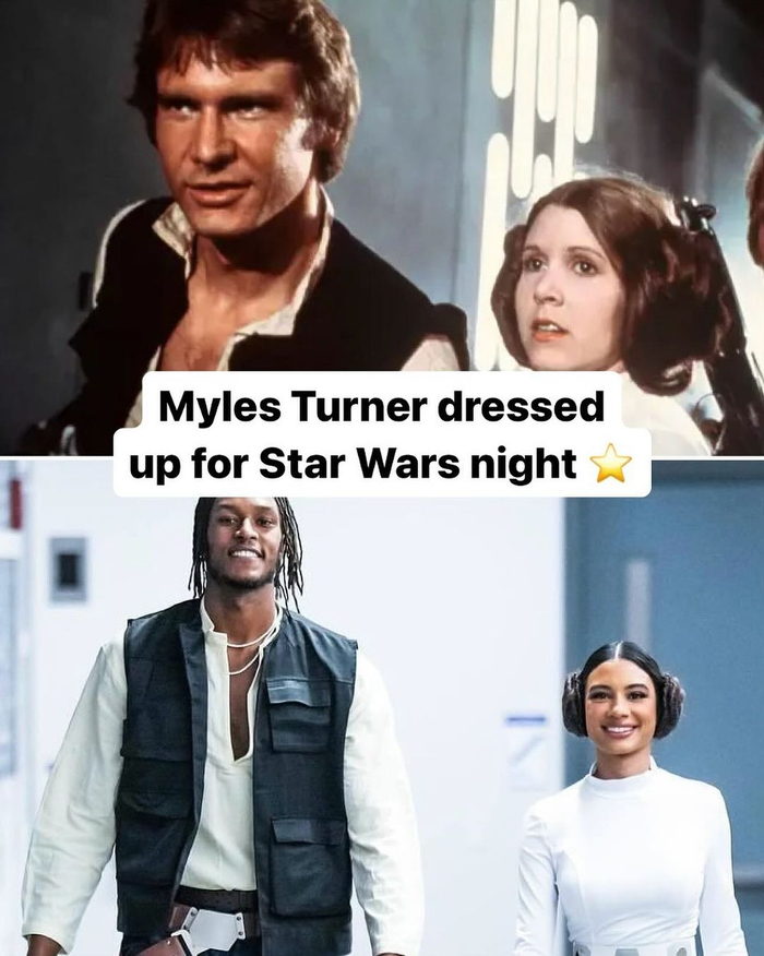 迈尔斯-特纳cos了“恶棍”索罗,而他的女友cos了莱娅公主,与他一同步入球馆。