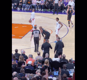 在快船球员鲍威尔罚球期间,保罗朝着身边的主裁福斯特一边做着合十的手势。最终太阳获得了胜利,保罗个人也终结了在福斯特执裁的季后赛中的14连败。