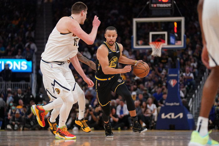 第四节打成127平时,库里与保罗挡拆,遭到掘金包夹。库里对角传球找底角的维金斯被抢断,本赛季库里已经数次关键时刻失误。