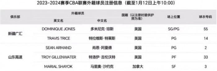 直播吧1月12日讯 今天CBA官网更新了外籍球员注册信息,山东第三外援肖恩-阿曼德完成注册。