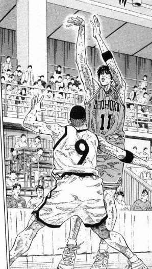 ——三井有了队友们的信赖,不停地出手三分球。