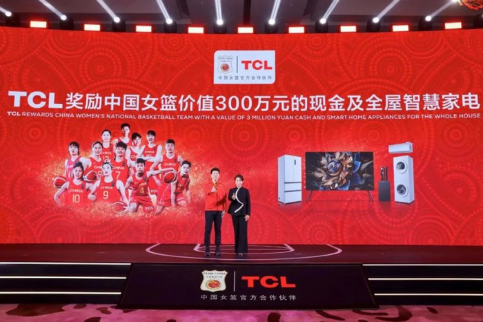 在中国女篮亚运会夺冠授奖仪式上,TCL奖励中国女篮价值300万元的现金及全屋智慧家电,嘉奖她们在赛场上奋力拼搏、敢为不凡的运动精神。