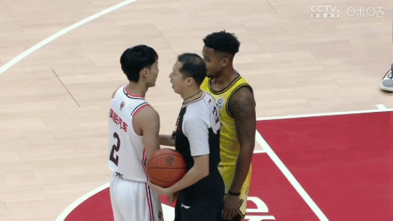徐杰本场缠斗对方超级外援皮特森,皮特森曾对徐杰比出“太小”手势。↓