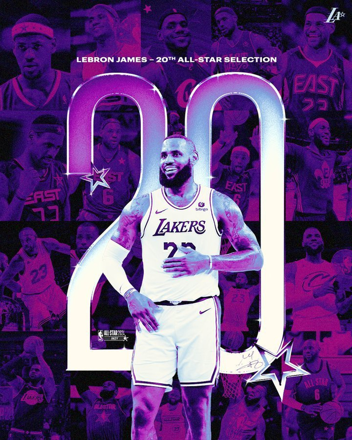 湖人球迷:詹姆斯入选全明星 20次,历史第一,了不起!