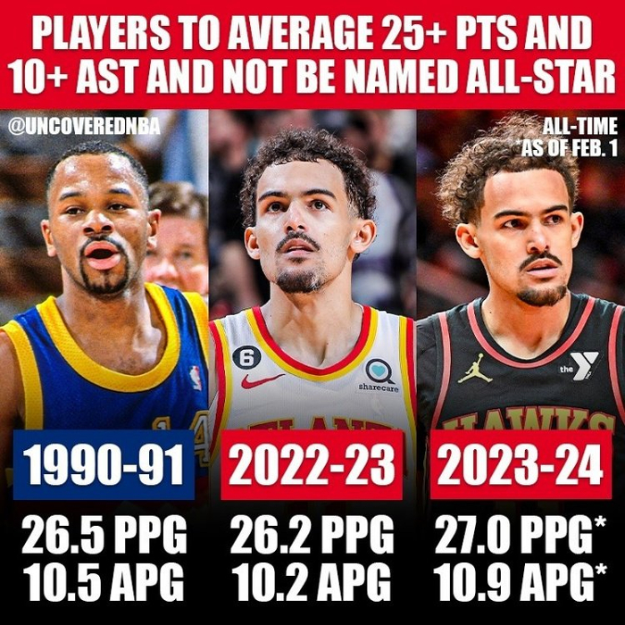 最大遗珠?历史共3次球员场均至少25分10助落选全明星 吹杨占两席