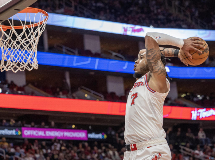 火箭上一场大胜猛龙避免连败,近期5场比赛3胜2负表现还算中规中矩。火箭上一场对阵猛龙早早就确立起大比分领先,这也给了替补端的两位新人阿门、惠特莫尔足够的时间,而两人也不负众望均拿到个人生涯新高,阿门这场比赛11投9中高效拿到19+7+4,惠特摩尔则在进攻端大杀四方砍下25+6。而被诟病了半个赛季的杰伦-格林表现越来越好,上一场早早收下比赛的情况下他只打了27分钟并14投7中拿到14分,而他最近6场比赛27.2分6.7篮板的发挥非常不错。