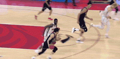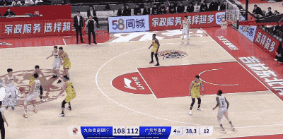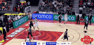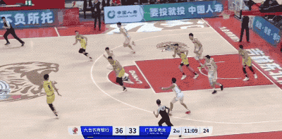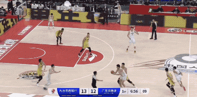 广东队起手的进攻被防下来,然后胡明轩在回合还剩12秒时接手,重新策动攻势的他打成2+1,把一次糟糕的组织变成宝贵的得分