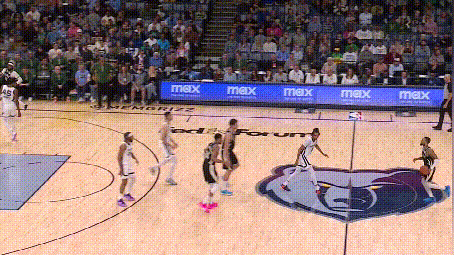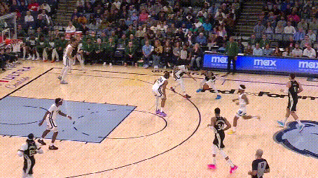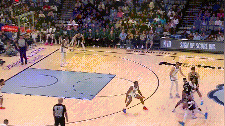 字母给人的观感是无法阻挡的。基本上,只要他出手,灰熊一个拦不住。这也不是一场“累死字母防死其他人”的比赛。虽然字母创造的不少空位三分机会队友没有把握住,但全场打完,字母12个助攻,并且只有1个失误。雄鹿这场的进攻非常有想法,上半场尤其明显,字母去到低位、腰位持球,围绕他来展开了一系列进攻,颇有效果,包括: